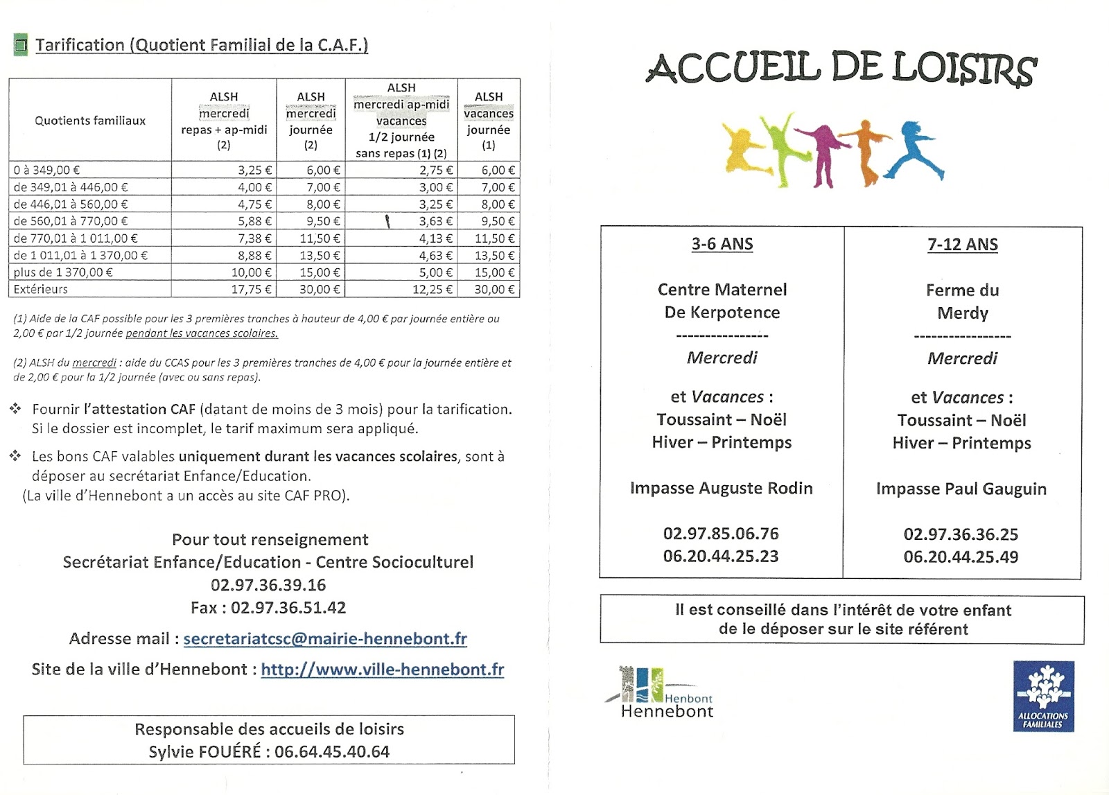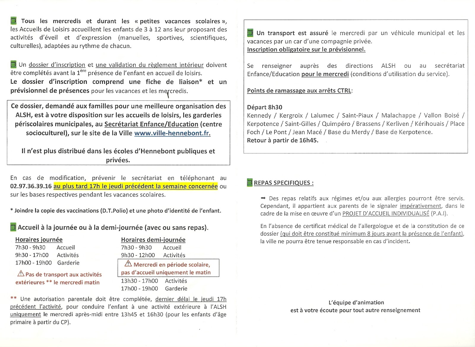 ACCUEIL DES ENFANTS AUX CENTRES DE LOISIRS D’HENNEBONT