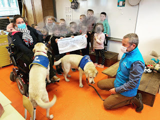 Nous leur avons remis un chèque d’une valeur de 1076,30€. Cette somme va servir à financer l’achat d’un chien, dont nous serons les parrains. Nous recevrons régulièrement des nouvelles du chien !