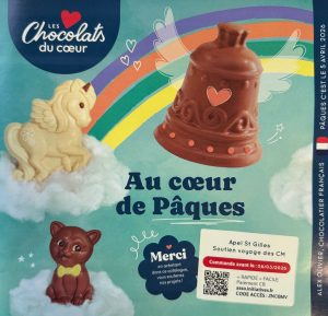 Afin de financer une partie du voyage scolaire des classes de CM, nous lançons une vente de chocolats. Les commandes pourront être passées : * en ligne via