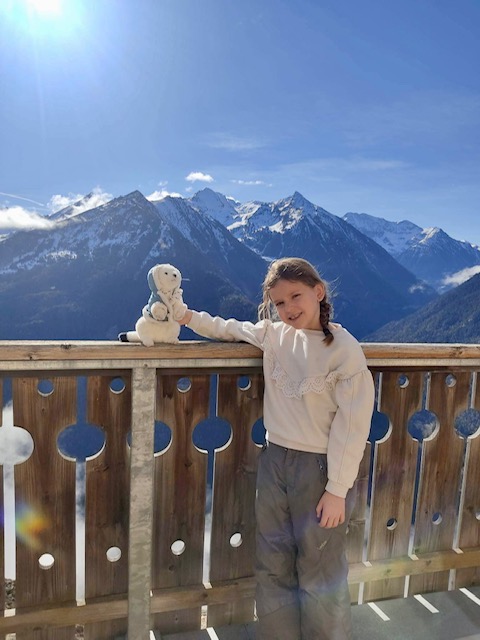 Avec Célio et sa famille, Blanche a profité des balades à ski. Elle a adoré les descentes en luge et la visite de la fromagerie. Elle a apprécié sa rencontre avec Rio, le chien d’avalanche.