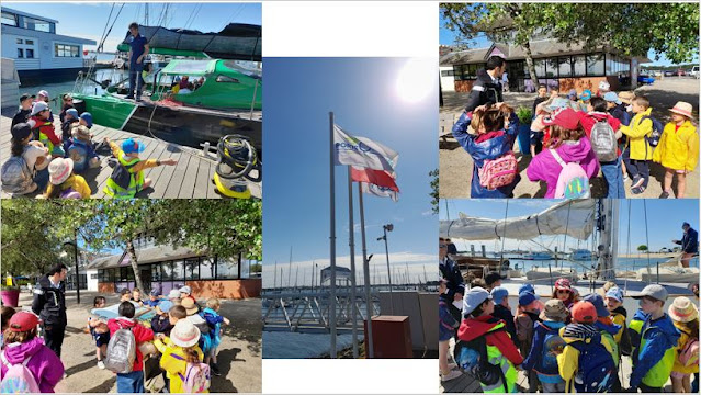 Petit séjour en bord de mer pour les classes de Marie et Sylvie ! Au programme : visite guidée du port avec le papa de Méline et rencontre avec le navigateur Conrad Colman. Le lendemain activités en anglais et défis sportifs .