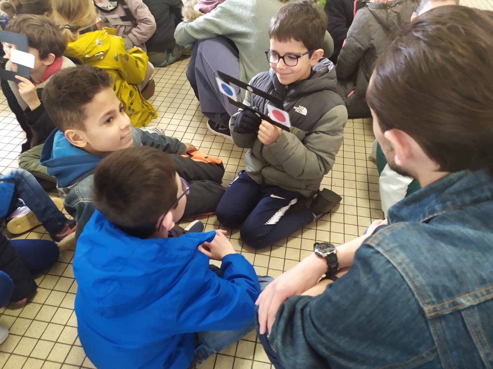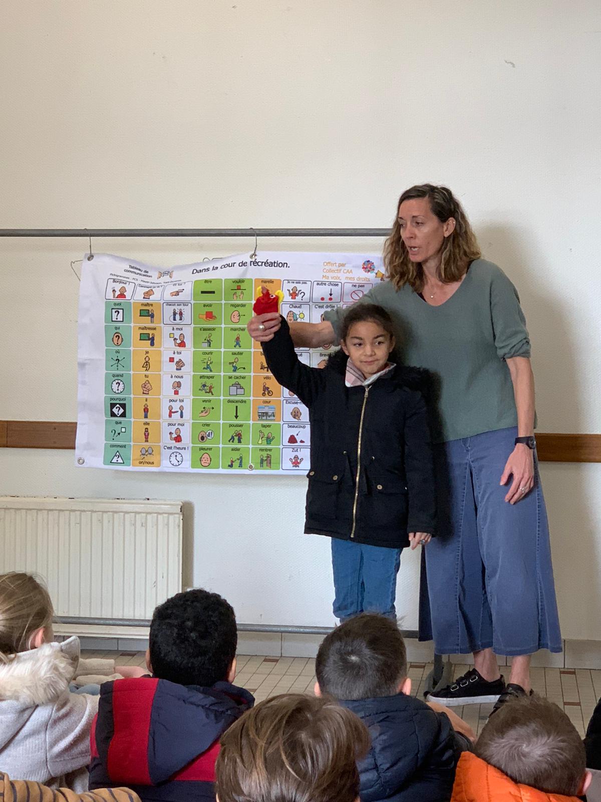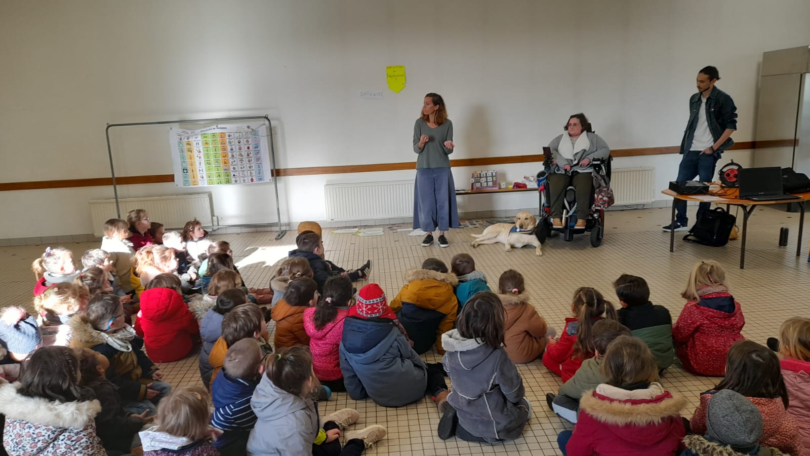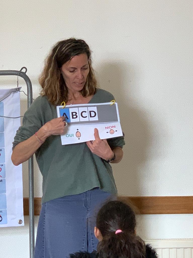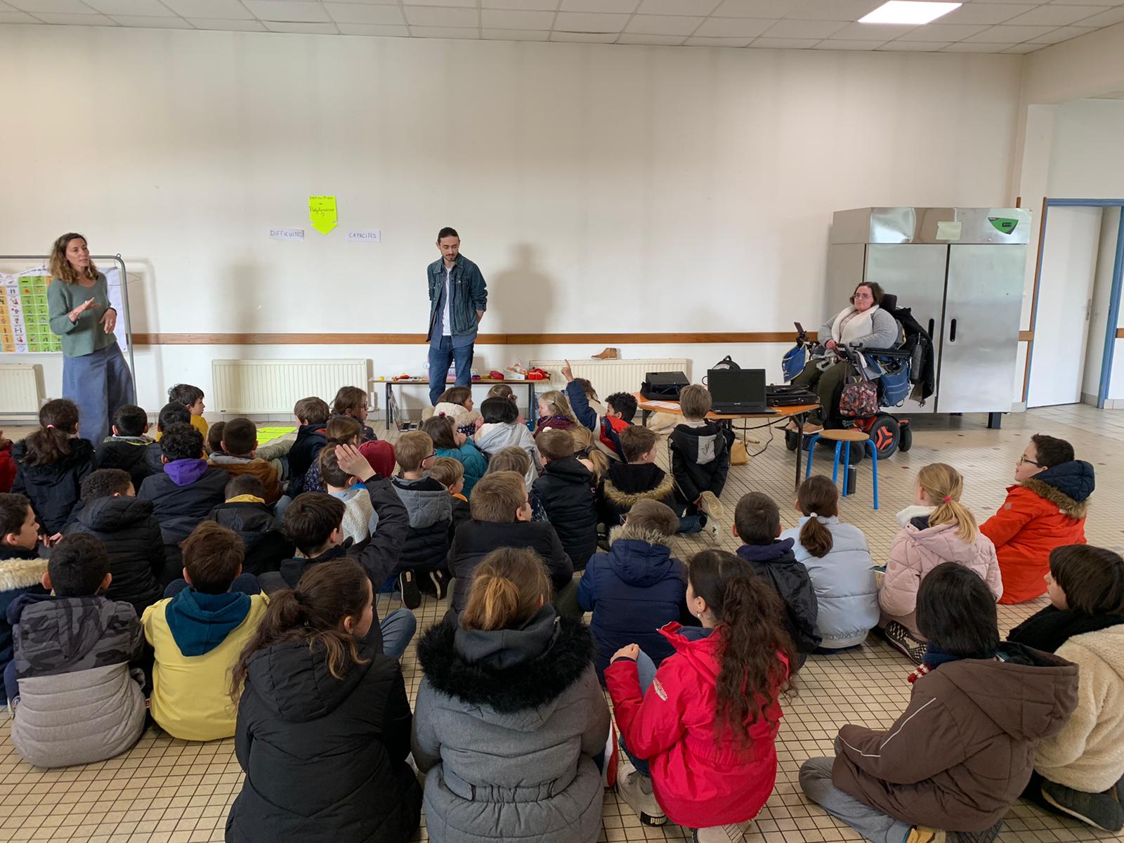 Les membres de l’association “Des carrés dans des ronds” sont venus présenter le polyhandicap aux élèves. Emmanuelle, l’éducatrice, était accompagnée de Titouan, Auregan et Passoa. Les élèves ont découvert que les enfants porteurs de polyhandicap pouvaient apprendre et communiquer avec leurs yeux grâce à du matériel adapté dont l’achat est financé grâce aux dons. Le vendredi 7 avril, nous organiserons un pique-nique solidaire afin de collecter des fonds pour qu’ils puissent continuer de scolariser des enfants dans de bonnes conditions. Les enfants étaient contents de revoir Auregan et Passoa qui étaient venues présenter l’association Handi’chiens l’an dernier.