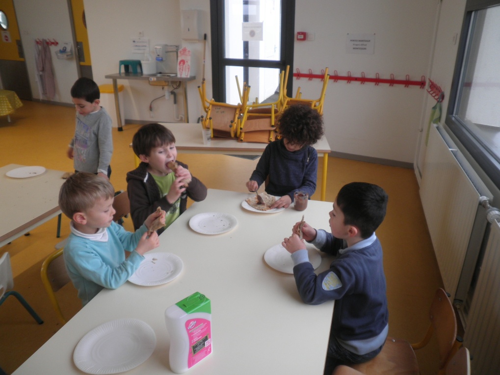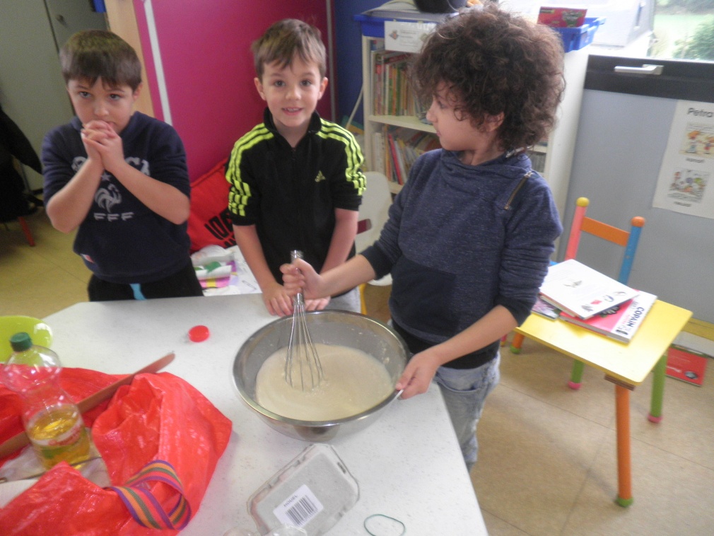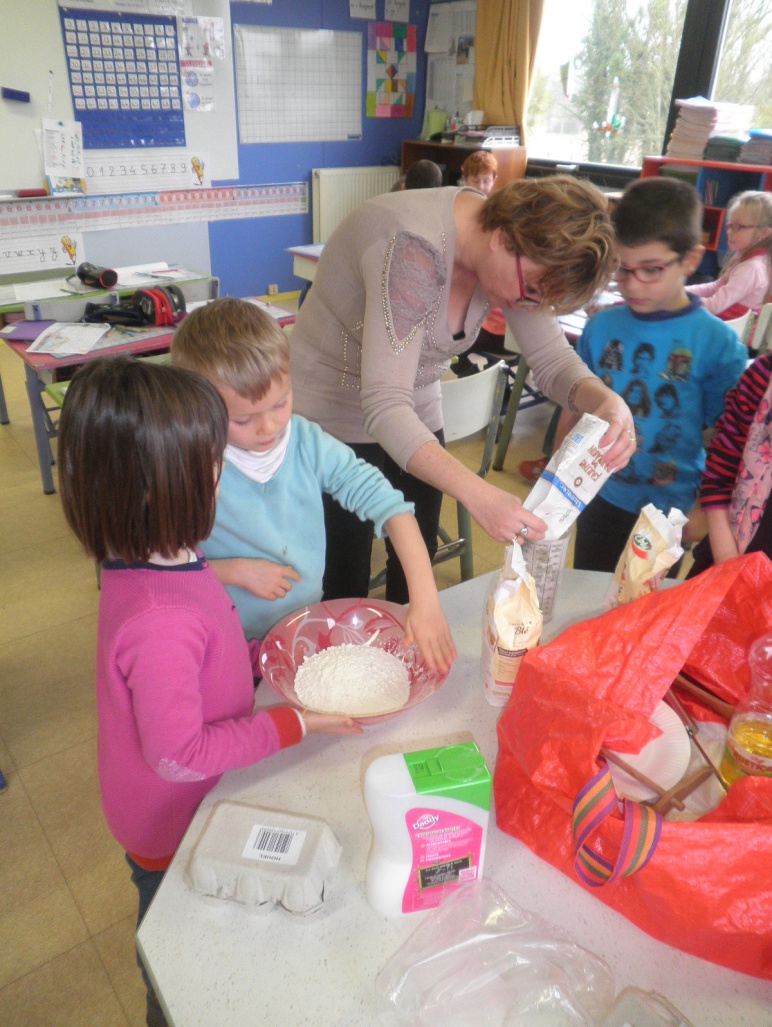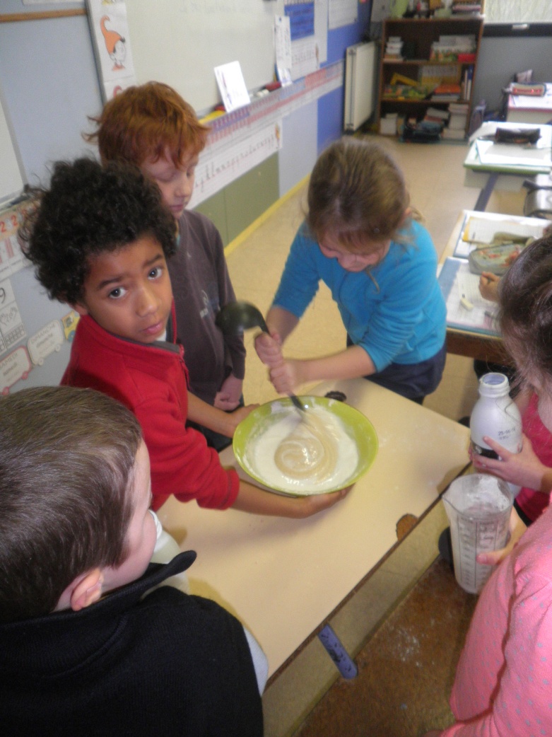 Mamie Simone est venue le 4 février faire des crêpes dans la classe bilingue.