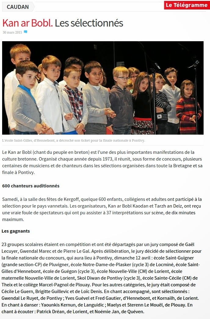 Kan ar Bobl : L’école Saint Gilles sélectionnée