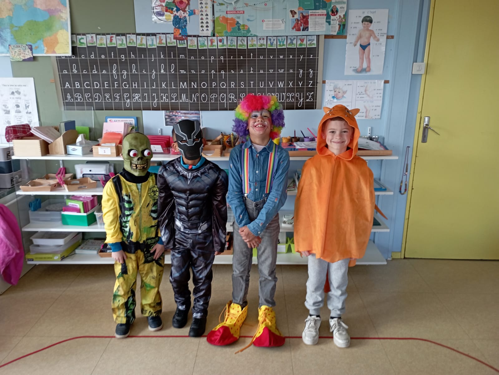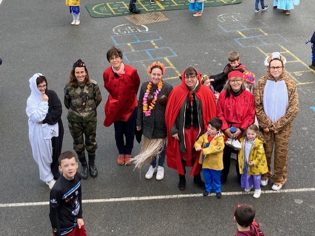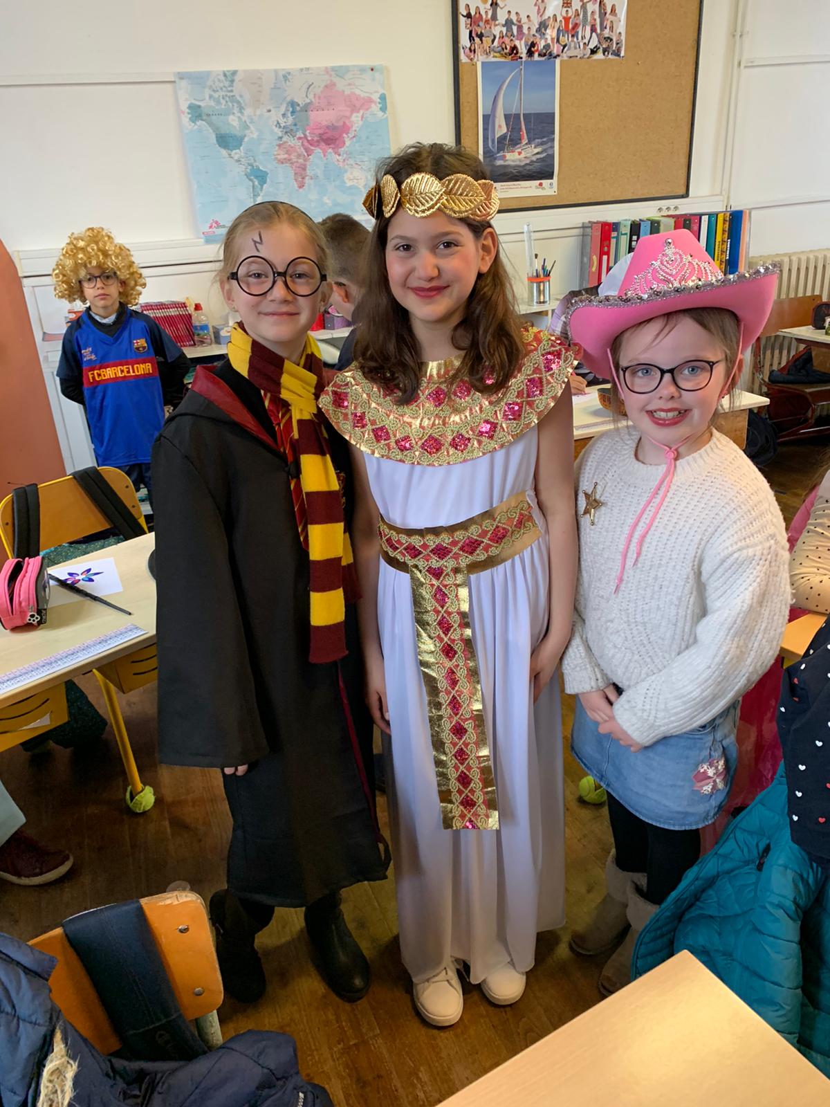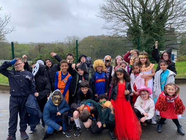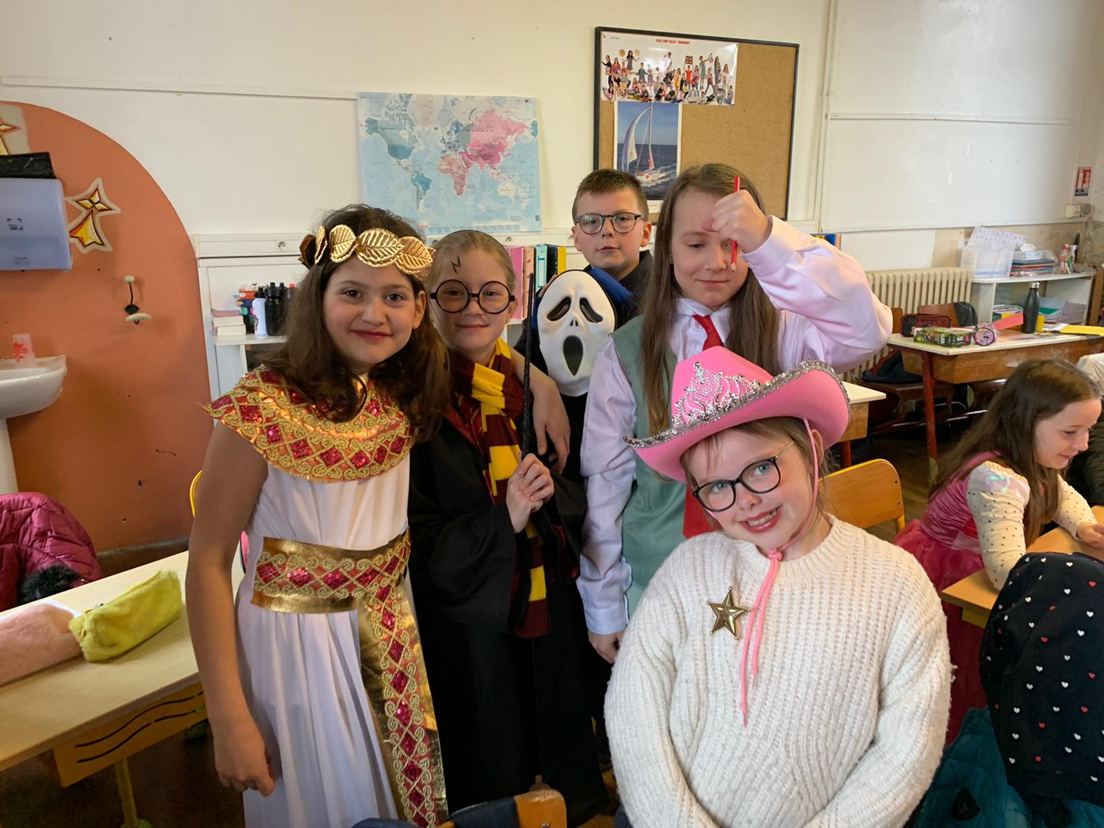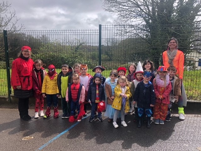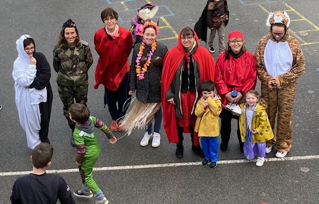 Le roi Charles III était présent à l’ouverture du portail pour accueillir Spiderman, Cendrillon, Batman, Harry Potter, and Cie … A 14h30, la pluie ne nous a pas permis d’organiser le traditionnel défilé jusqu’à la maison Sainte Marie. Les enseignantes ont improvisé un temps convivial dans les classes. La journée s’est terminée par un goûter offert par l’APEL que nous remercions sincèrement.