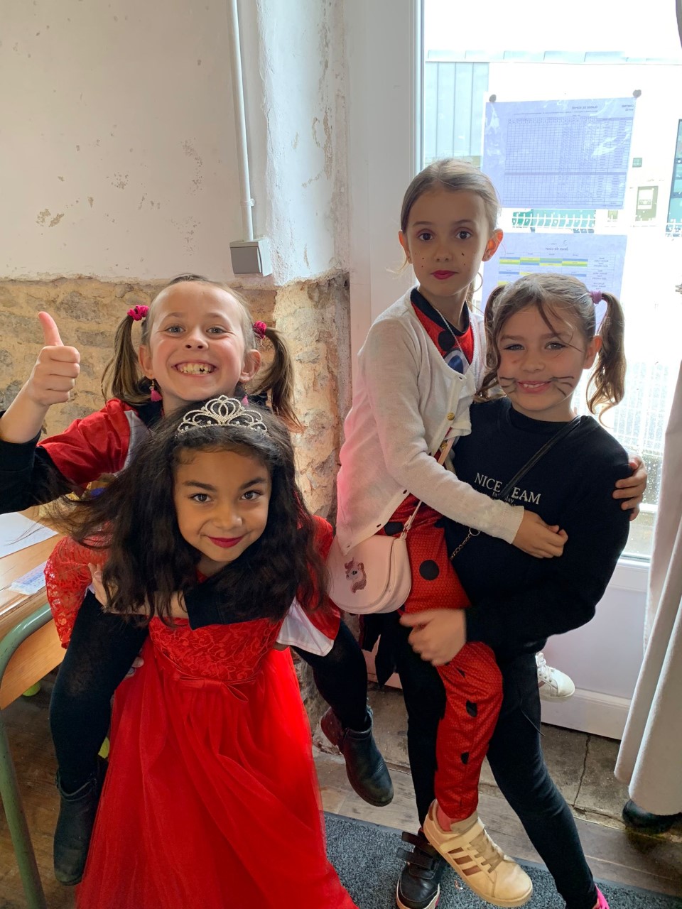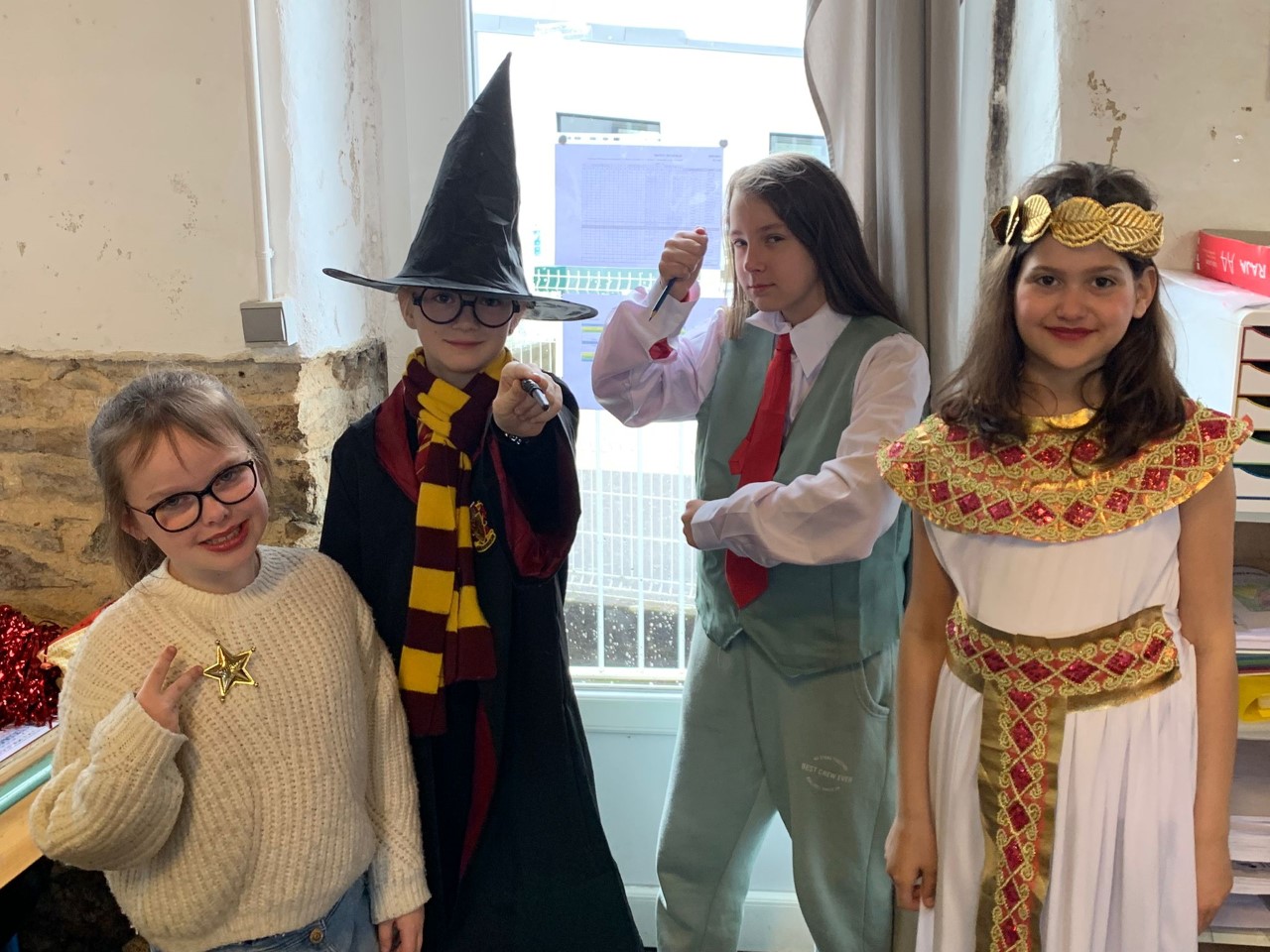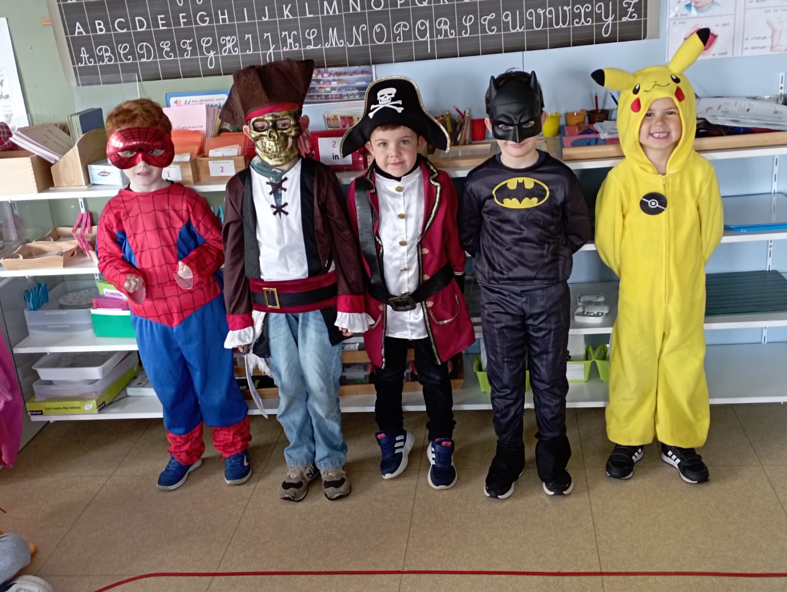 Le roi Charles III était présent à l’ouverture du portail pour accueillir Spiderman, Cendrillon, Batman, Harry Potter, and Cie … A 14h30, la pluie ne nous a pas permis d’organiser le traditionnel défilé jusqu’à la maison Sainte Marie. Les enseignantes ont improvisé un temps convivial dans les classes. La journée s’est terminée par un goûter offert par l’APEL que nous remercions sincèrement.