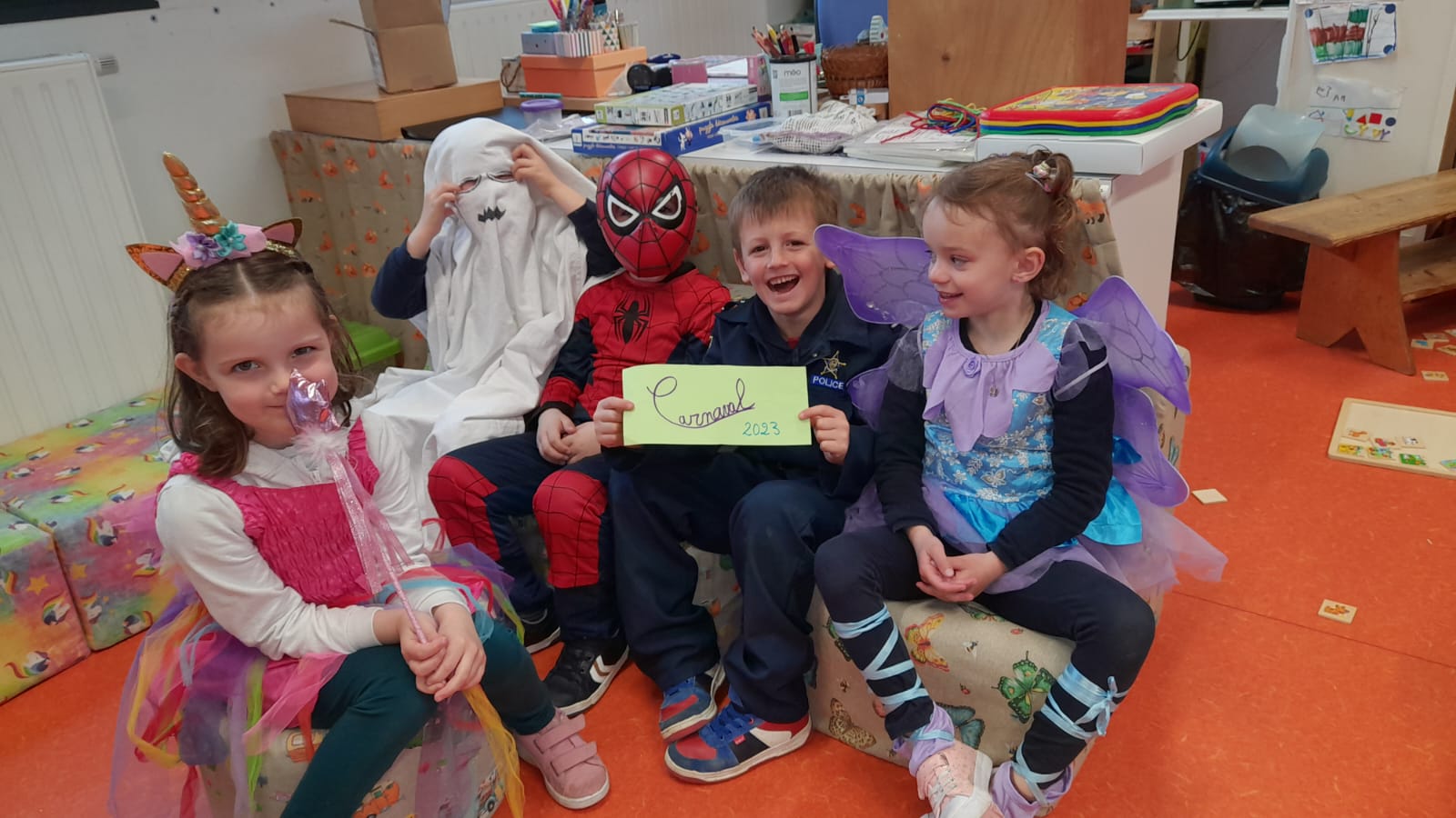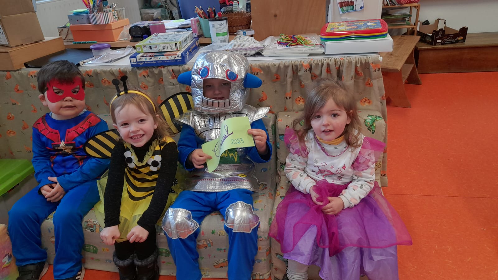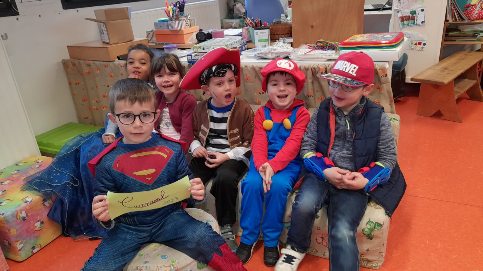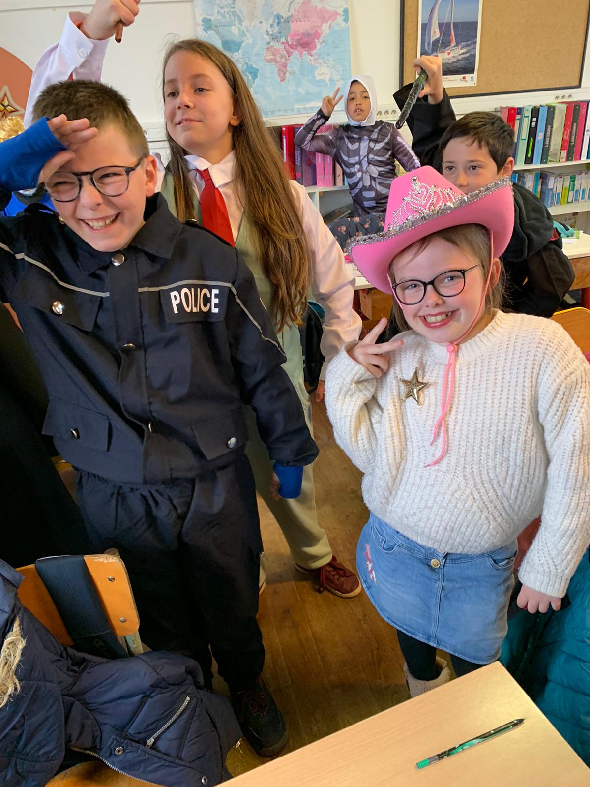Le roi Charles III était présent à l’ouverture du portail pour accueillir Spiderman, Cendrillon, Batman, Harry Potter, and Cie … A 14h30, la pluie ne nous a pas permis d’organiser le traditionnel défilé jusqu’à la maison Sainte Marie. Les enseignantes ont improvisé un temps convivial dans les classes. La journée s’est terminée par un goûter offert par l’APEL que nous remercions sincèrement.