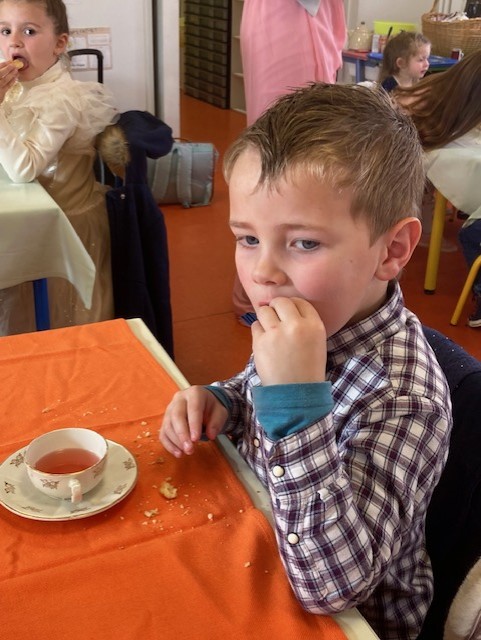 Une belle occasion de sortir les habits du dimanche et les robes de princesse. Ces “little ladies et gentlemen” ont dégusté les délicieux scones préparés la veille.