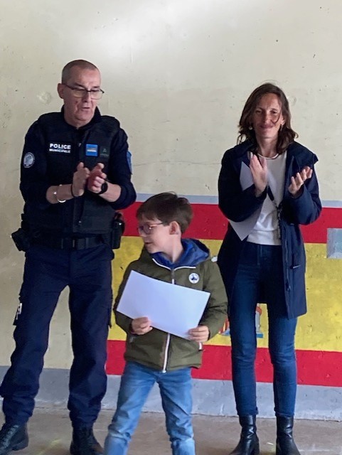 Le policier municipal et Gwendal Henry, conseiller municipal en charge des affaires scolaires, ont remis à chacun un diplôme.
