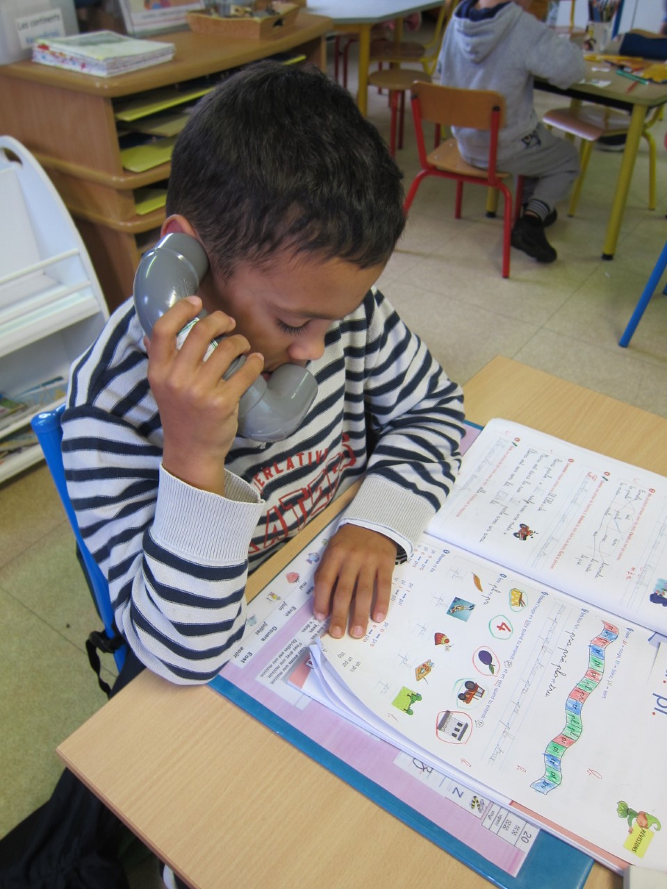 Les CP ont maintenant des “chuchoteurs” qui les aident à lire à voix basse. Ils s’entendent lire sans déranger leurs camarades.
