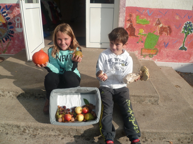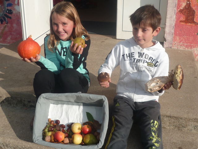 Charlotte et Antoine (CE1 monolingue) sont venus nous présenter les fruits d’automne !