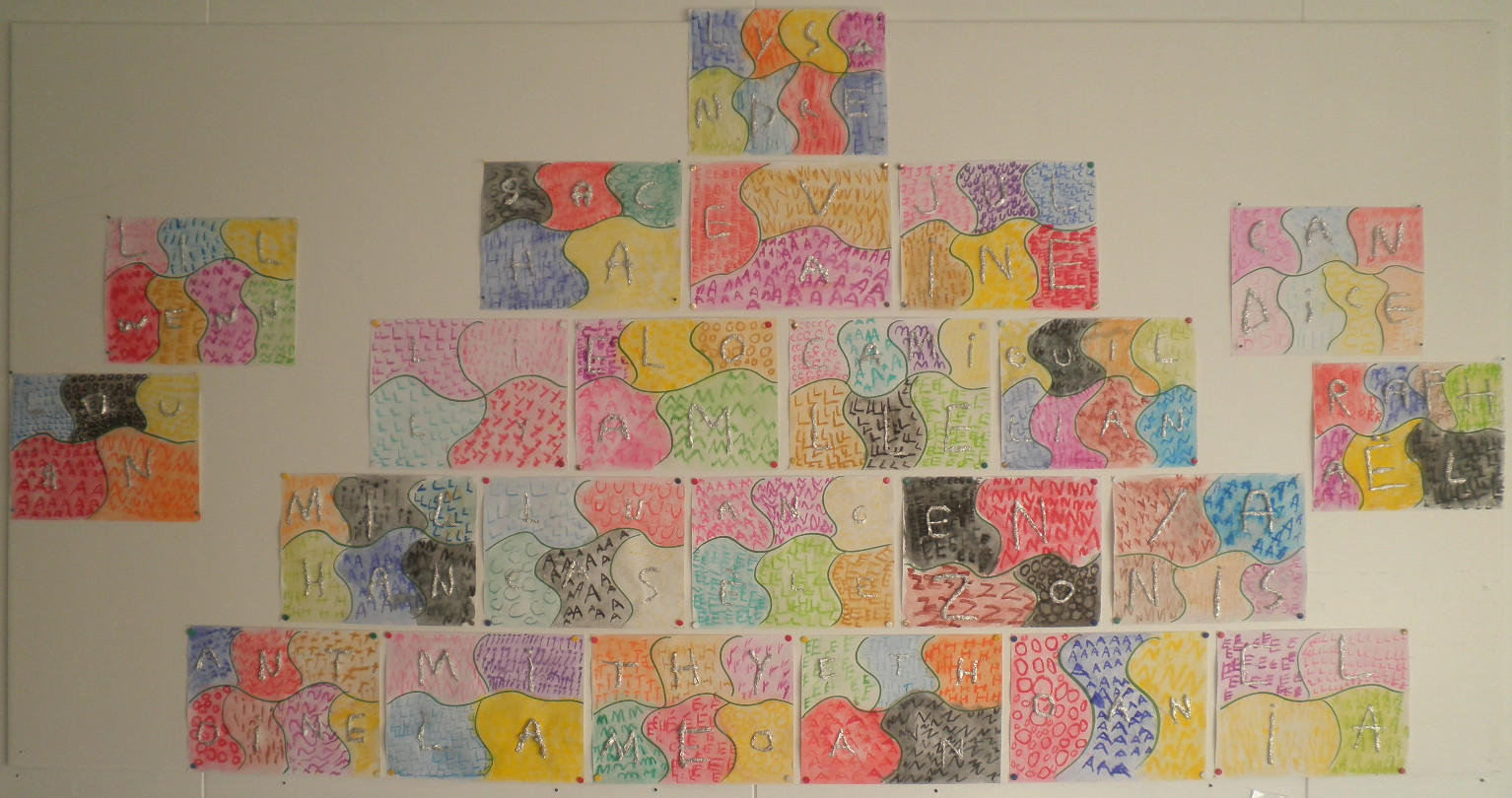 - Nous avons réalisé une œuvre autour des lettres de notre prénom.
