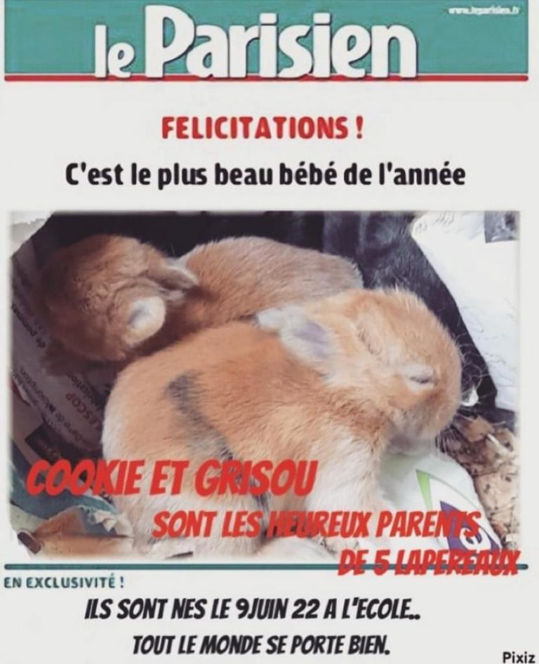 Cookie et Grisou sont les heureux parents de 5 adorables bébés lapins ! Ils grandissent merveilleusement bien. Les