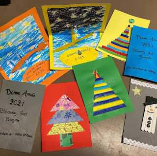 En réponse à nos dessins offerts à Noël, les résidents de la maison Sainte Marie du Bouëtiez ont réalisé de jolies cartes de vœux.