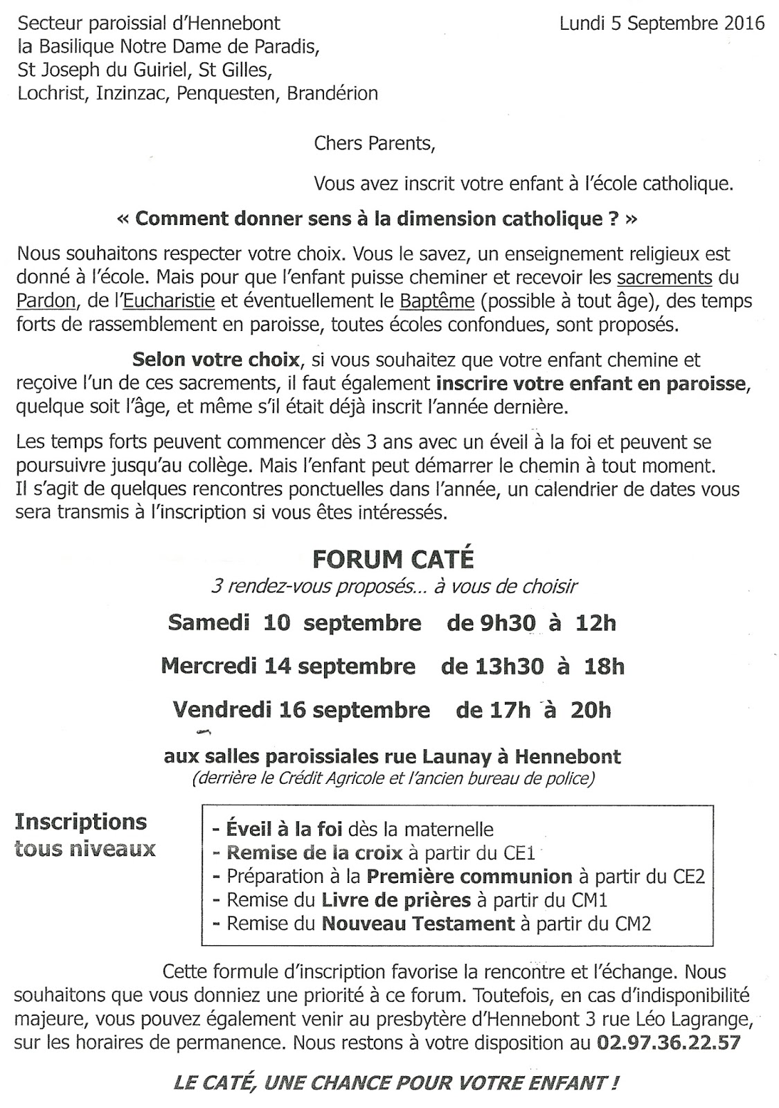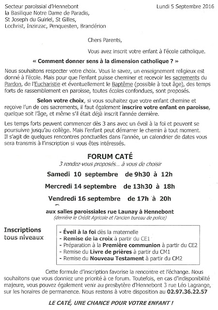 SI VOUS SOUHAITEZ INSCRIRE VOTRE ENFANT EN PAROISSE : RV AU FORUM CATE !