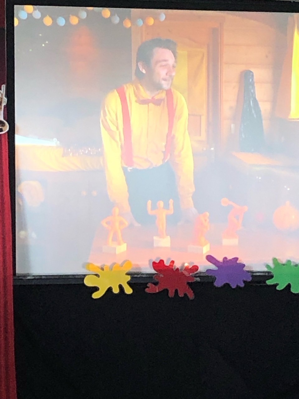 L’histoire : Par erreur, l’animatrice a effacé les couleurs du costume d’Arlequin. Le spectacle approche. Les enfants doivent l’aider à retrouver ses couleurs. Nous sommes allés voir Pamina, la musicienne, pour trouver du bleu. Après, nous sommes allés voir Amberto, le sculpteur, pour récupérer le jaune. Puis Carole, la danseuse, nous a donné le rouge. Enfin Rosa, la peintre, nous a montré comment mélanger les couleurs afin d’obtenir le violet, le vert et l’orange.