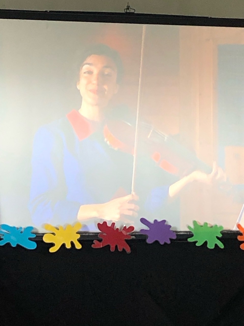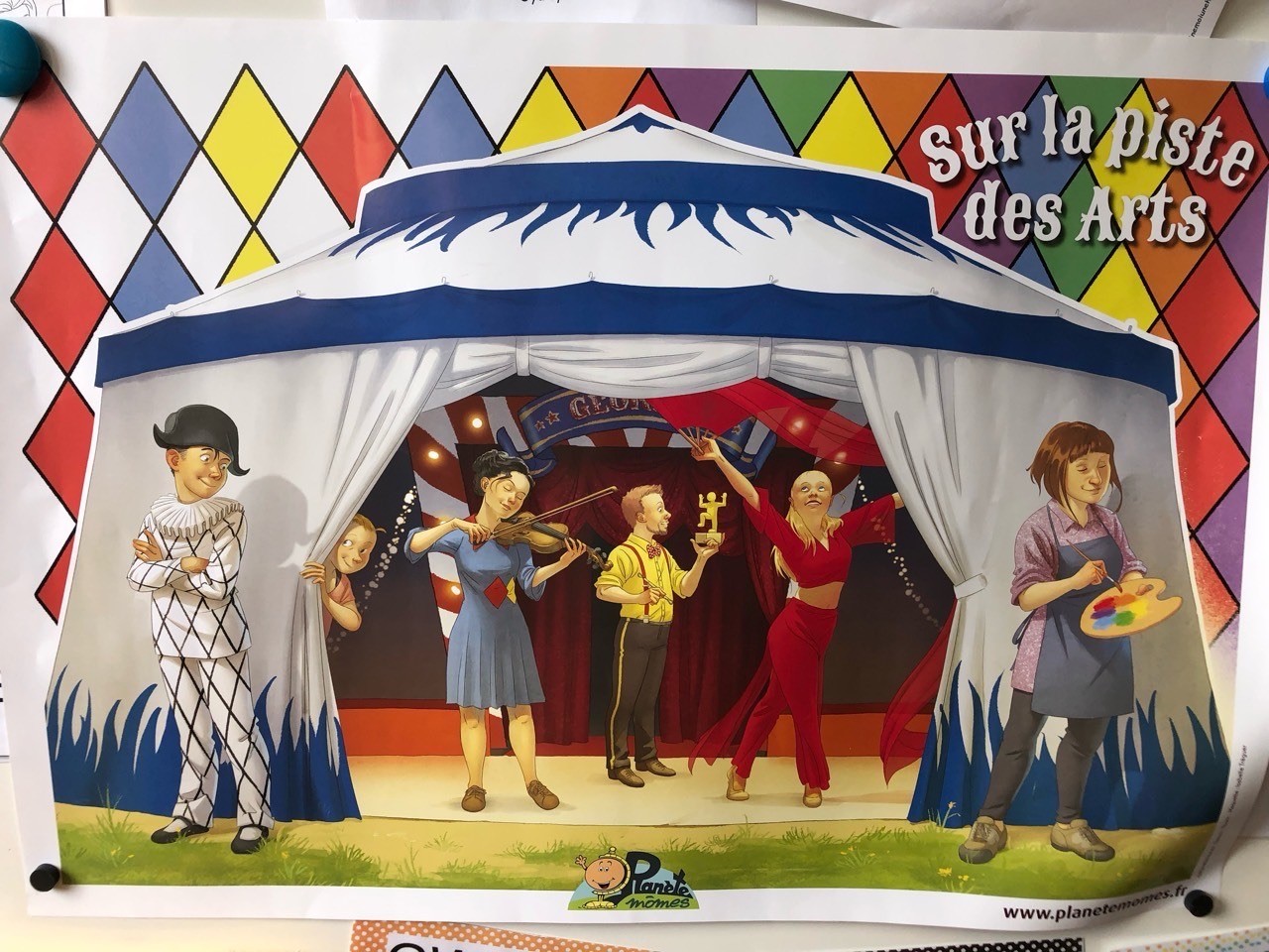 L’histoire : Par erreur, l’animatrice a effacé les couleurs du costume d’Arlequin. Le spectacle approche. Les enfants doivent l’aider à retrouver ses couleurs. Nous sommes allés voir Pamina, la musicienne, pour trouver du bleu. Après, nous sommes allés voir Amberto, le sculpteur, pour récupérer le jaune. Puis Carole, la danseuse, nous a donné le rouge. Enfin Rosa, la peintre, nous a montré comment mélanger les couleurs afin d’obtenir le violet, le vert et l’orange.