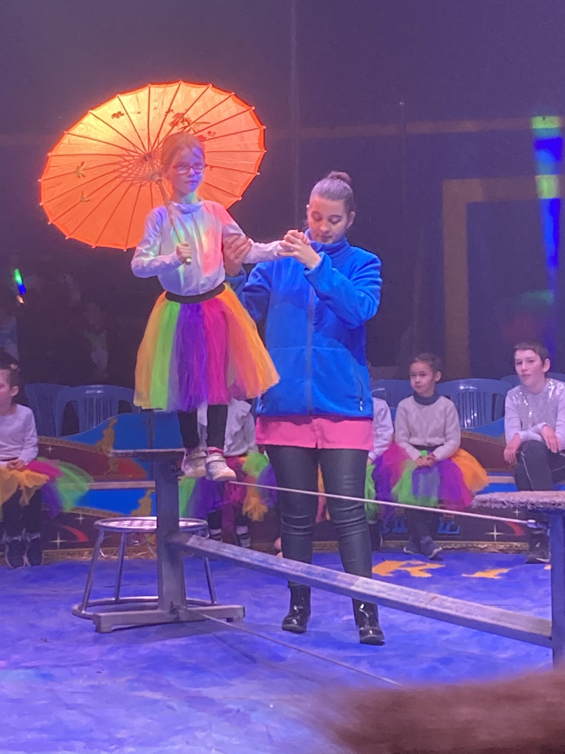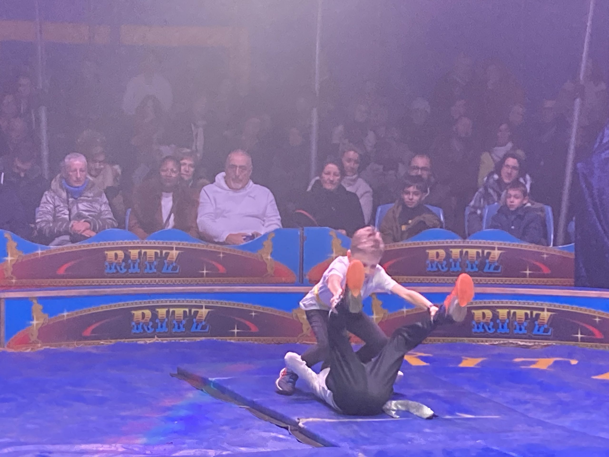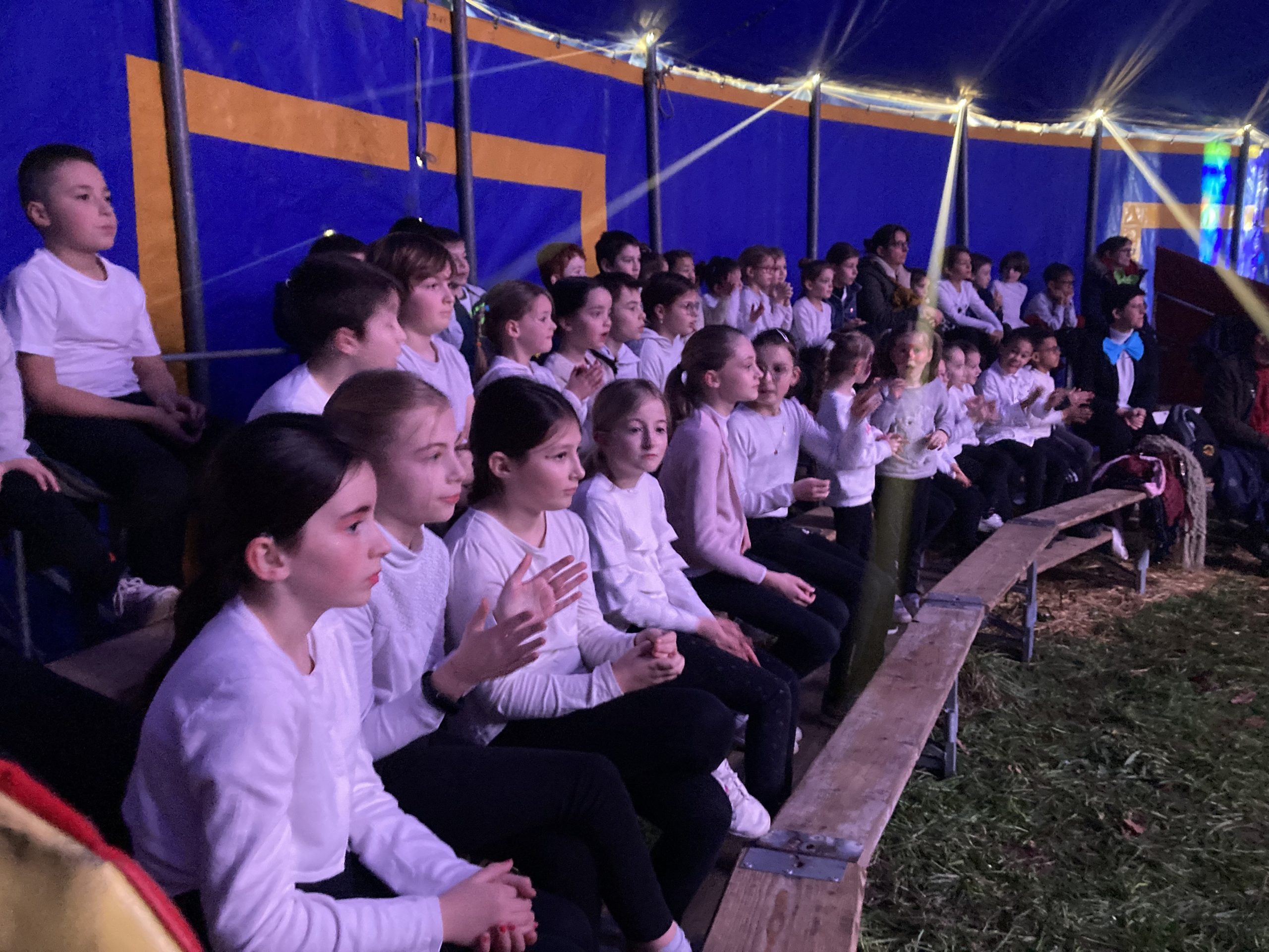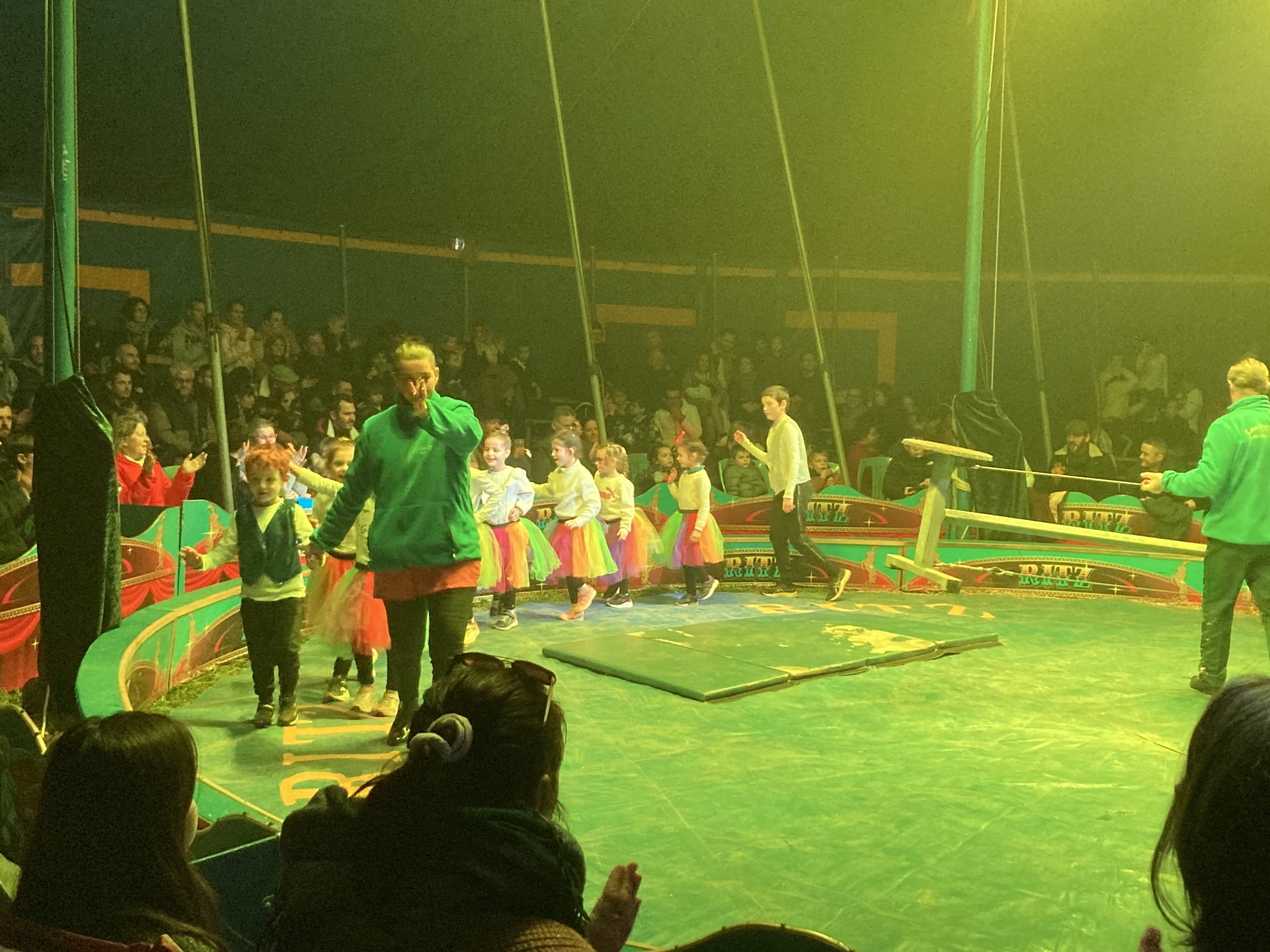 Le samedi 21 janvier, se déroulait la première représentation du spectacle de cirque des élèves des classes de Mannuella, Anne, Nelly et Gwenole. Les membres de la famille Ritz avaient préparé les enfant tout au long de la semaine. Différents ateliers des arts du cirque leur étaient proposé : trapèze, acrogym, rolla-bolla, boule…