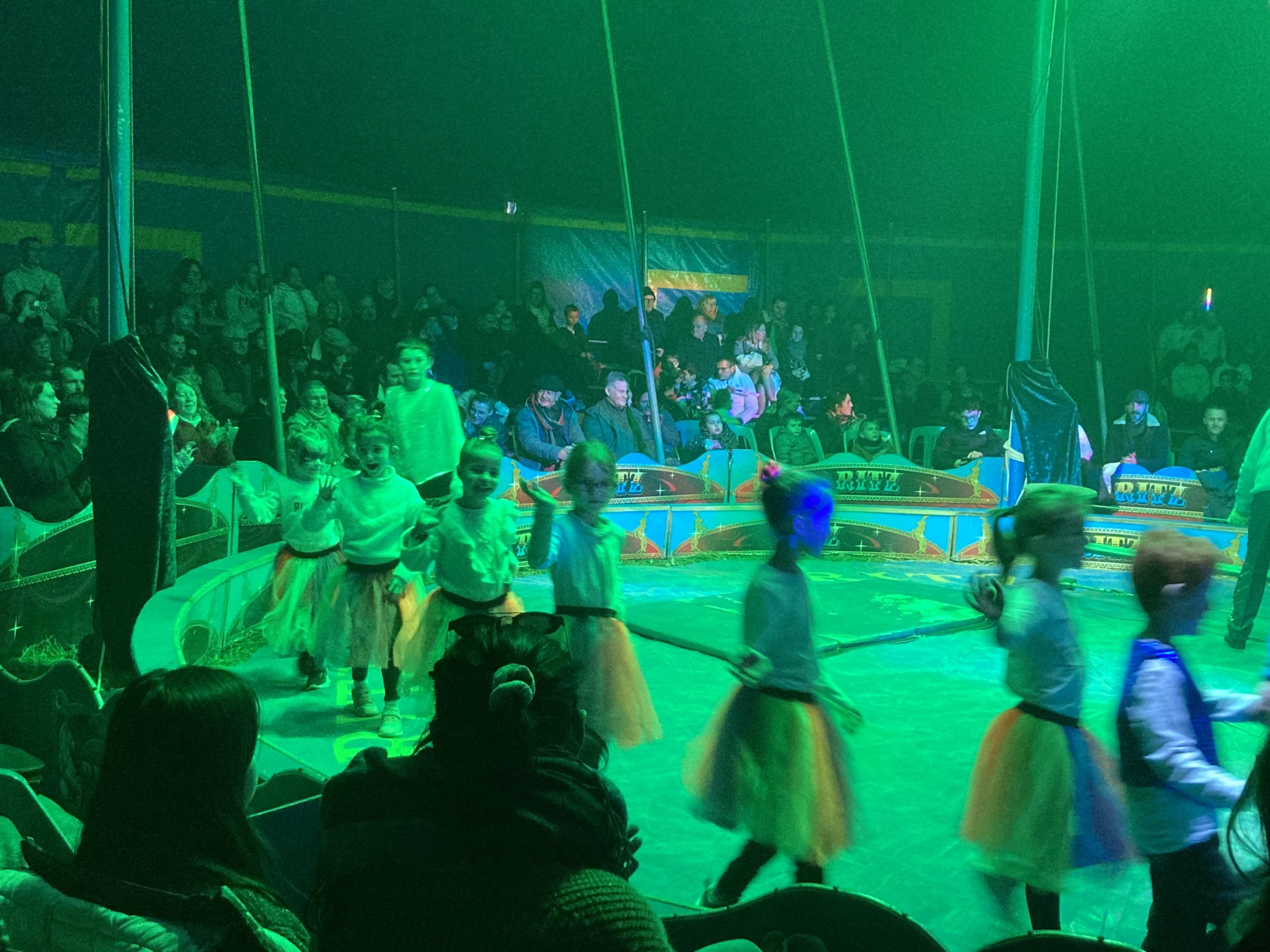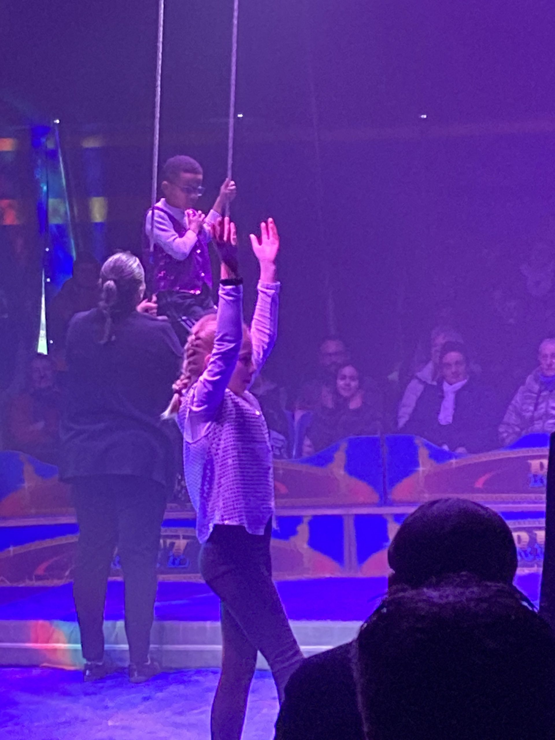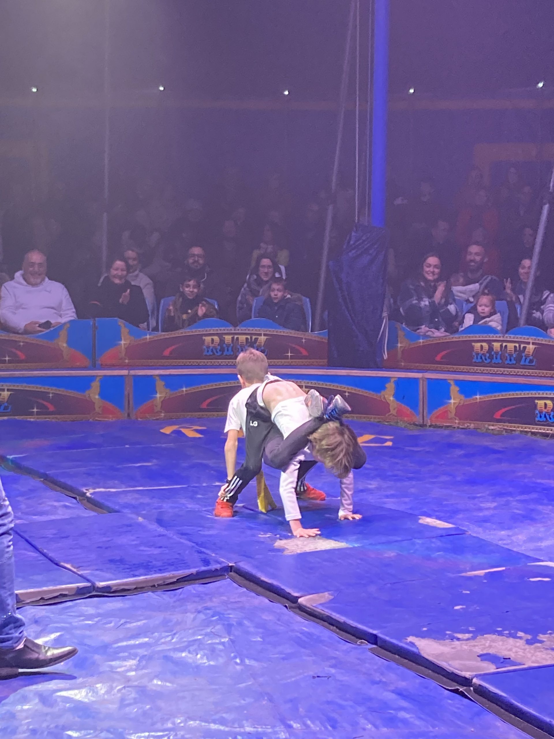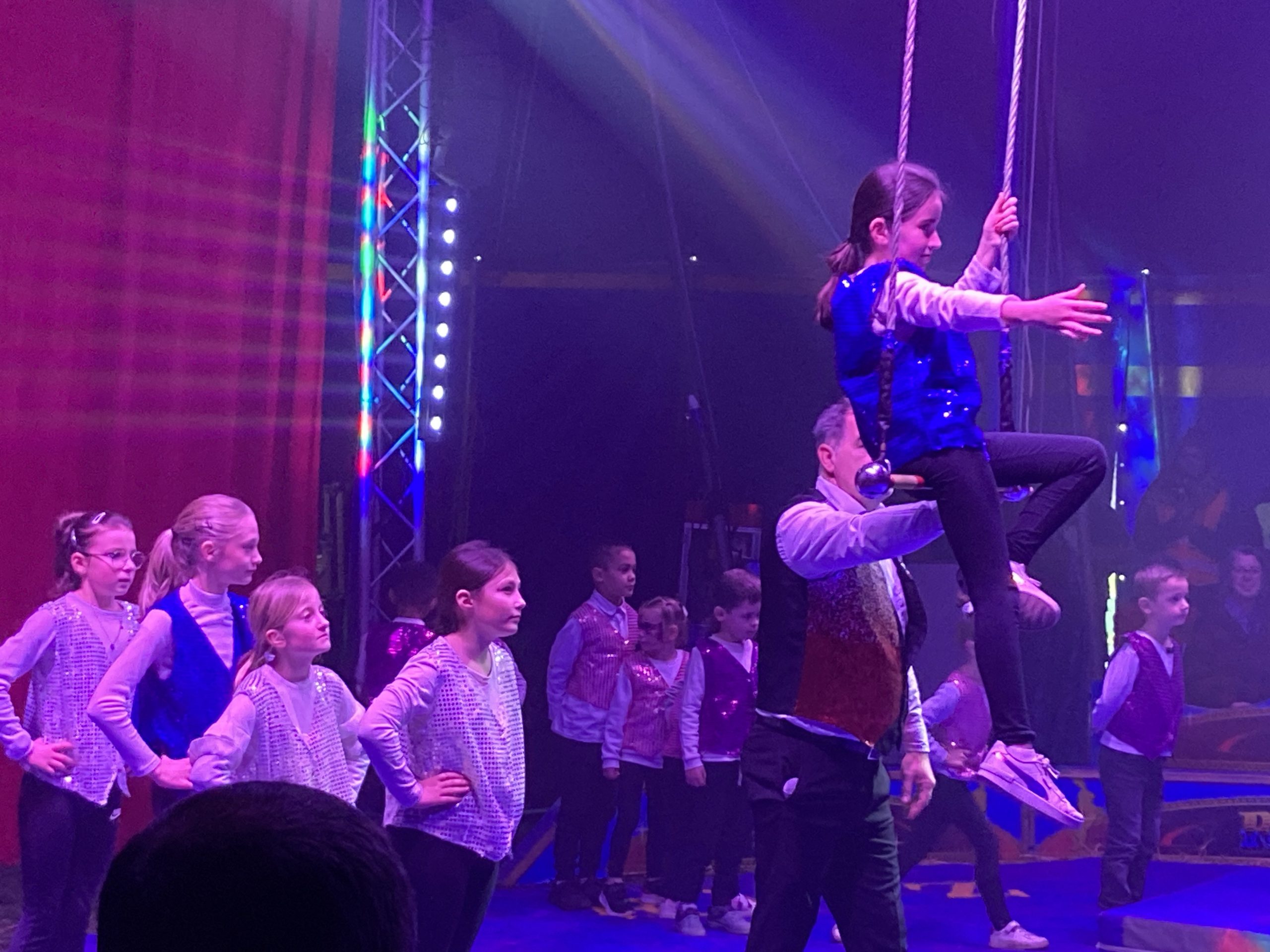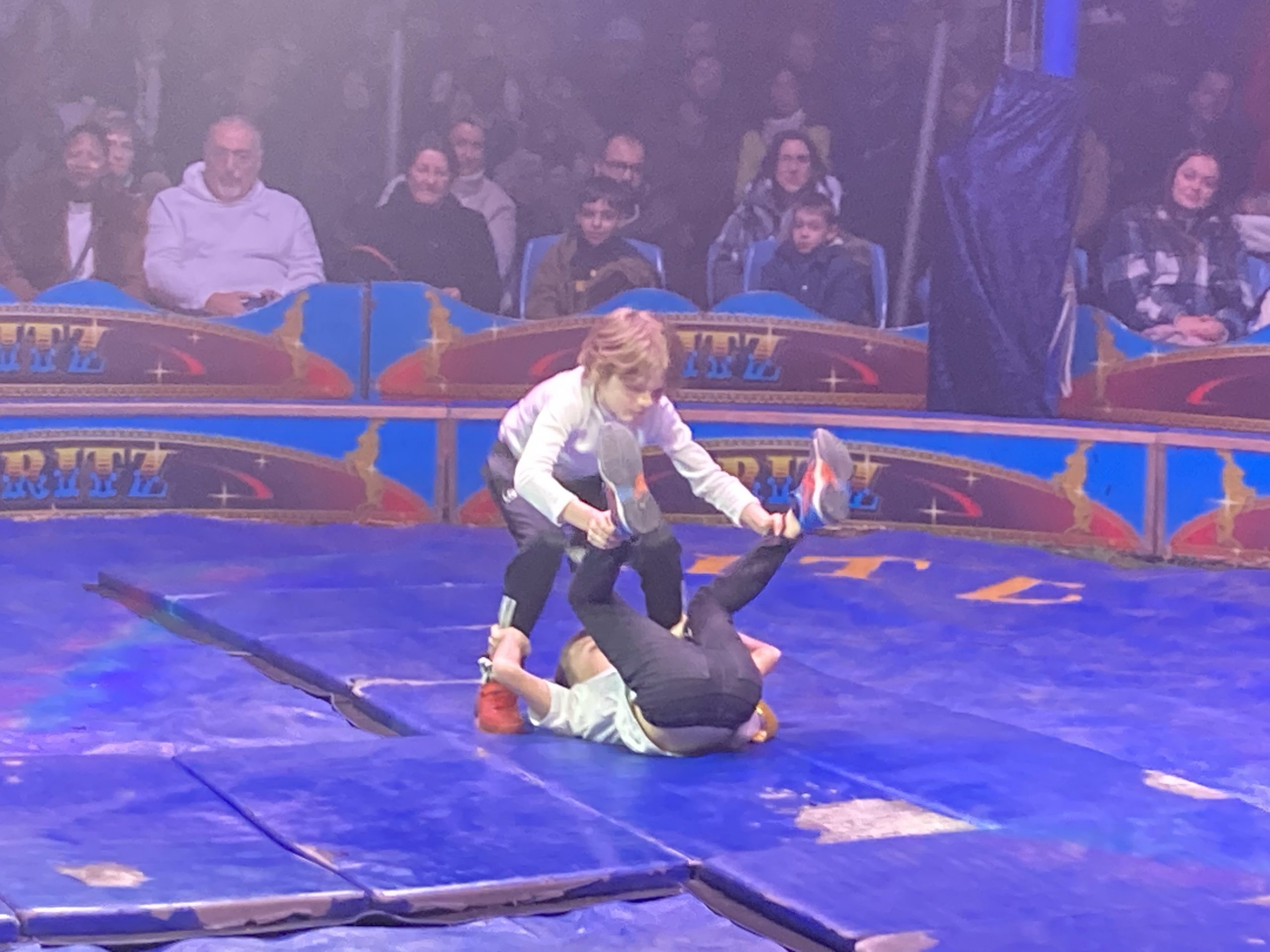 Le samedi 21 janvier, se déroulait la première représentation du spectacle de cirque des élèves des classes de Mannuella, Anne, Nelly et Gwenole. Les membres de la famille Ritz avaient préparé les enfant tout au long de la semaine. Différents ateliers des arts du cirque leur étaient proposé : trapèze, acrogym, rolla-bolla, boule…