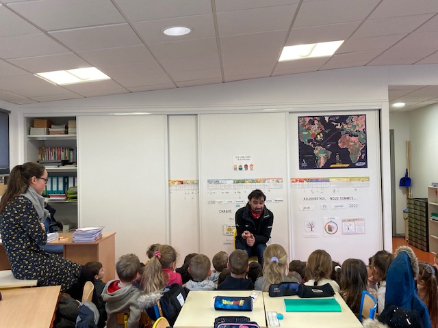 Le jeudi 19 janvier, nous avons eu la chance d’accueillir Alan Roura, skipper sur l’imoca Hublot. Il était accompagné de Blanche, notre mascotte. Il est passé dans quelques classes pour raconter sa course sur la Route du Rhum. Les enfants ont été attentifs et lui ont posé beaucoup de questions. Nous le remercions pour sa visite. Nous lui souhaitons le meilleur pour les prochaines courses.